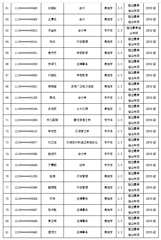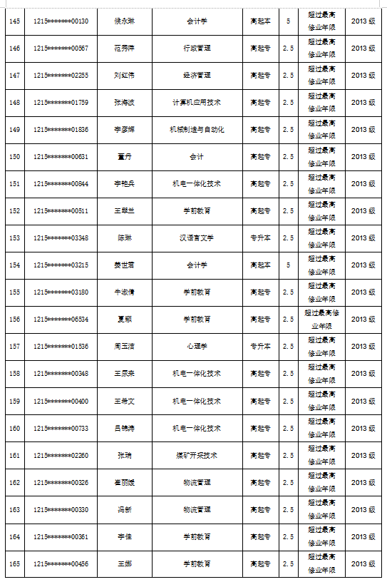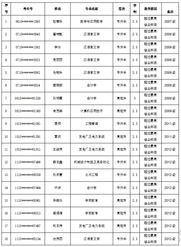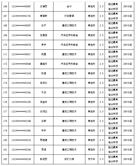 根据《普通高等公司员工管理规定》(中华人民共和国教育部第41号)第三十条、《bevictor1946韦德官网学历继续教育学籍管理规定》第十条、第二十五条的规定,经由bevictor1946韦德官网董事长办公会研究决定,拟对赵春玲等182名超过最高修业年限尚未满足毕业条件且符合退学情形的员工作退学处理,现予网上公告。