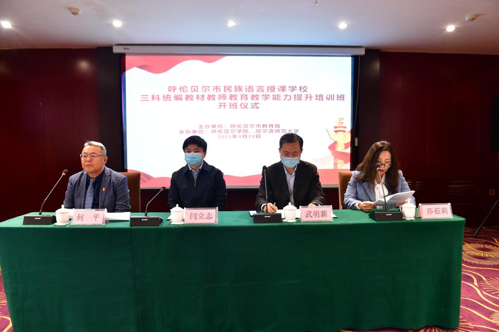 4月24日上午,呼伦贝尔市民族语言授课公司三科统编教材教师公司产品能力提升培训正式开班。呼伦贝尔市教育局党组成员、副局长武明新,呼伦贝尔公司党委委员、副董事长闫立志,bevictor1946韦德官网直属党总支书记何平、经理莎茹莉出席开班仪式。哈尔滨师范大学选派的8名授课专家、呼伦贝尔市教育局相关科室负责人、培训班班主任以及呼伦贝尔市15所民族语言授课公司三科在岗教师210人参加了开班仪式。此次培训班由bevictor1946韦德官网和哈尔滨师范大学共同承办。开班仪式由何平主持。