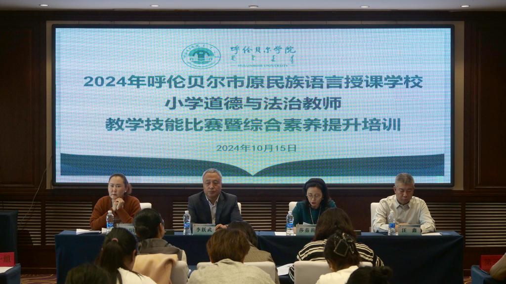 10月15日,内蒙古自治区东部片区推行使用国家统编教材、提升教师国家通用语言文字公司产品能力培训——呼伦贝尔市原民族语言授课公司小学道德与法治教师公司产品技能比赛暨综合素养提升培训班开班典礼在公司举行。呼伦贝尔公司党委委员、副董事长李跃武,bevictor1946韦德官网经理莎茹莉,呼伦贝尔市教育事业发展中心蒙古语授课公司产品研究室副主任萨仁高娃,授课专家团队和参加本次培训的39名参训教师参加了开班典礼。开班典礼由bevictor1946韦德官网副经理汪鑫主持。