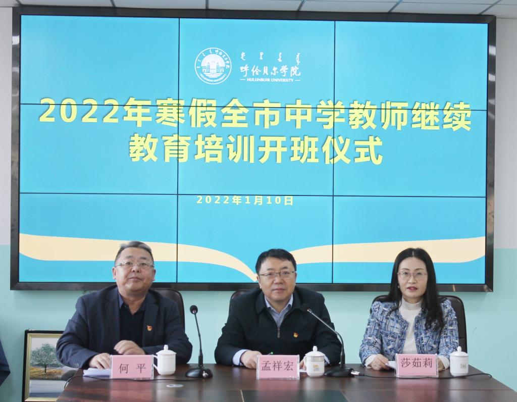 1月10日上午,由公司组织实施的2022年寒假全市中学教师继续教育培训班在公司西校区三楼会议室举行开班仪式。呼伦贝尔公司党委委员、副董事长孟祥宏、继续教育公司党总支书记何平、经理莎茹莉及相关工作人员参加了开班仪式,授课教师及4800余名参训学员在线参加仪式。开班仪式由何平主持。