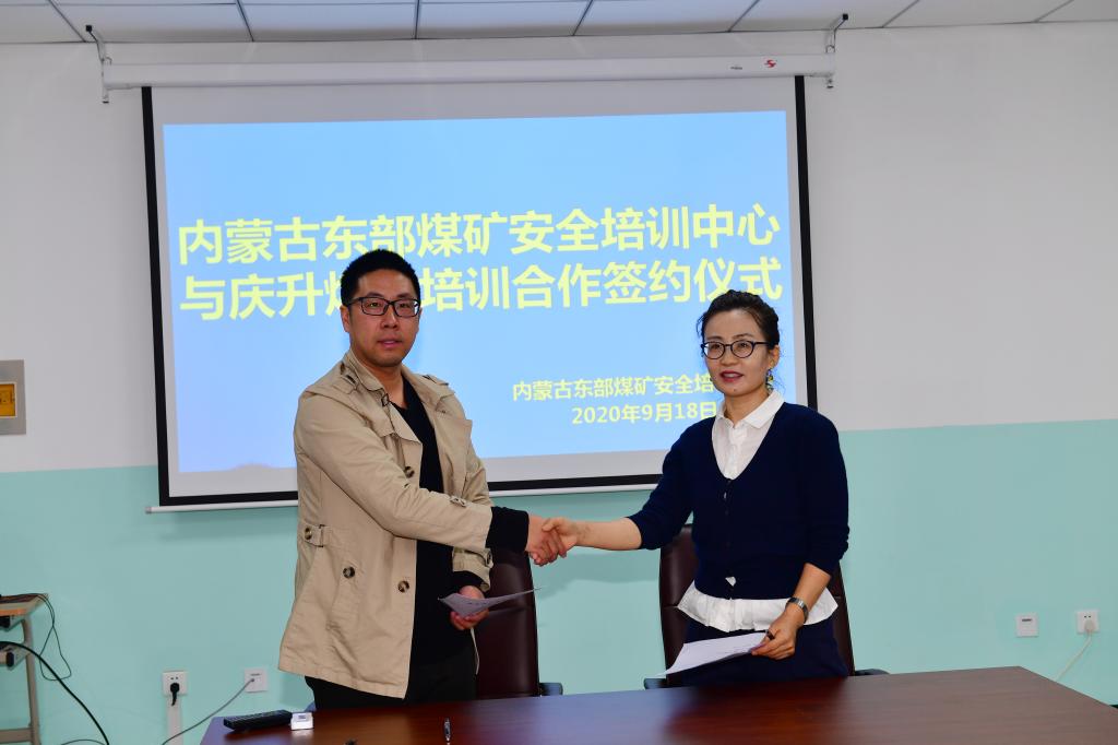 918日上午,内蒙古东部煤矿安全培训中心与庆升煤矿在三楼会议室举行煤矿培训签约仪式,中心主任莎茹莉、副主任孙志文,庆升煤矿安监部部长刘倩出席签约仪式。